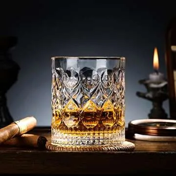 Aoeoe Whiskey Glasses Set of 4, 11 OZ Old Fashioned Glasses, Bourbon Glasses, Premium Scotch Glasses, Rocks Glasses, Cocktail Glasses, Clear Rum Glasses, Bar Glasses, Whiskey Glasses for Men