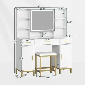 AOGLLATI Makeup Vanity Set - 3 Light Modes, Stylish Design, Perfect Storage Solution