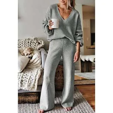 Show more Experience unparalleled comfort and style with the AOHITE Women's Knit Sweater Pajamas Set, expertly crafted for the modern woman. This two-piece ensemble, featuring a cozy v-neck pullover top and wide-leg pants, is perfect for lounging at home or stepping out in casual elegance. Made from a skin-friendly material, the soft texture of this set ensures you'll feel as good as you look. Whether you're unwinding after a long day or enjoying a leisurely weekend, this sleepwear promises to keep you comfortable and chic.