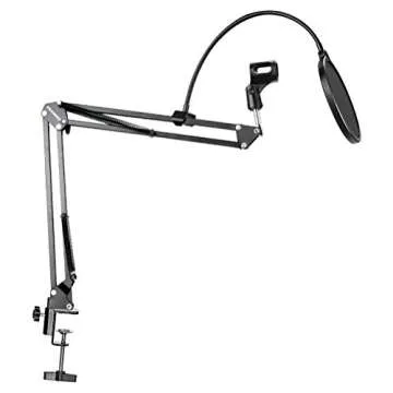 Aokeo AK-35 Microphone Suspension Boom Scissor Arm Stand with Mic Clip Holder, Table Mounting Clamp & Aokeo's Pop Filter Windscreen Mask Shield