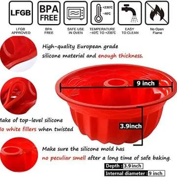 Aokinle Silicone Fluted Bunte Cake Baking Pan, European-Grade LFGB Top-Level Silicone Round Cake Mold, Non-Stick Cake Pan for Jello,Gelatin,Bread, 9.45 Inches Tube Bakeware Pan