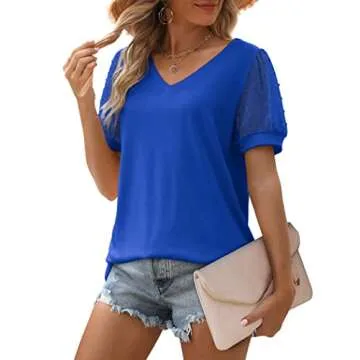 Show moreThe Aokosor Royal Blue Tops for Women are the epitome of elegance and comfort, designed for the sophisticated woman who seeks style without sacrificing comfort. Made from an incredibly soft, stretchy, and skin-friendly fabric, this blouse is anything but ordinary. The unique v-neckline and sheer Swiss dot puff sleeves add a touch of femininity and flair, making it perfect for various occasions. Available in a stunning royal blue, this top is versatile enough to transition from a casual day out to a more polished office look effortlessly.