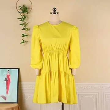 AOMEI Women's Crewneck Elastic High Waist Ruffles Hem A-Line Short Dress