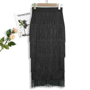 Crafted from a stretchy fabric, the skirt boasts a zipper closure that makes it easy to wear, though it's advisable to size up for those with curvier hips due to the tassel design that may restrict movement. The length of the skirt, ranging from 26 to 30 inches, offers a sophisticated look that pairs well with various tops. Imagine twirling on the dance floor, the tassels flowing effortlessly with your movements, bringing attention and admiration from everyone around you.