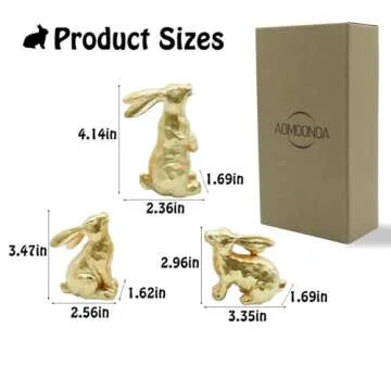 The vintage-inspired design showcases three uniquely posed bunnies with a luxurious gold finish that radiates elegance, making them a perfect addition to your seasonal decorations. These rabbit figurines measure at three sizes—2.36’’L x 1.69’’W x 4.14’’H, 3.35’’L x 1.69’’W x 2.96’’H, and 2.56’’L x 1.62’’W x 3.47’’H—ensuring they fit seamlessly into your tabletop tray or centerpiece.