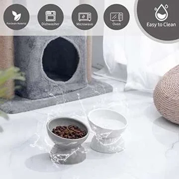 AOMRYOM Raised Cat Food Bowl, Ceramic Elevated Tilted Cat Bowls for Food and Water, Pet Bowl Dish Set for Cats and Small Dogs, Protect Cat's Spine, White & Grey, Set of 2