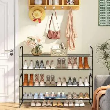 AOODA Long 2 Tier Shoe Rack for Closet Metal Wide Stackable Shoe Storage Organizer for Entryway, Bedroom, Floor, 18-Pairs Low Shoe Shelf, Black