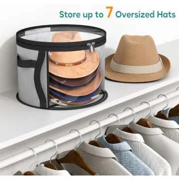 AOODA Oversized Clear Hat Storage Bag for Women, Holds up to 7 Caps Cowboy Hat Organizer for Closet, Wide Brims Hat Case with Carrying Handles (Grey)