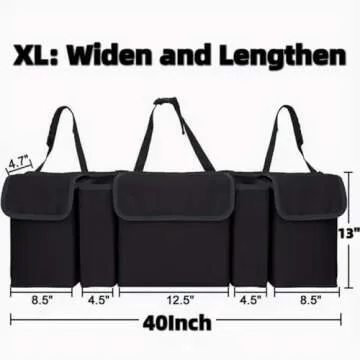 Show moreThe AOPHY Car Organizers and Storage is the ultimate solution for anyone looking to enhance their vehicle's organization. With a spacious design measuring 40" in length and 13" in width, this backseat hanging organizer provides an impressive five ultra-large capacity pockets, ensuring you have ample space to store everything from groceries and cleaning supplies to sports equipment and baby essentials. Crafted with reinforced base plates and strong, sturdy side walls, this organizer not only maintains its structure but is also designed with non-slip strips on the bottom to prevent any sliding around during your drives. Whether you're navigating sharp turns or facing bumpy roads, your items will remain securely in place.