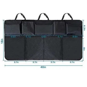 Show moreIntroducing the AOPHY Trunk Organizer for Car, your ultimate solution for a clutter-free vehicle! Designed with dimensions of 40" length and 18" width, this trunk organizer is equipped with reinforced base plates and sturdy side walls, ensuring durability and reliability. The non-slip strips on the bottom prevent unwanted sliding, making it ideal for keeping your items in place during those bumpy rides. Featuring 9 ultra-large capacity storage bags with a lid, you'll have ample space to store groceries, cleaning agents, baby toys, tire gauges, dog supplies, tools, sports equipment, and much more!