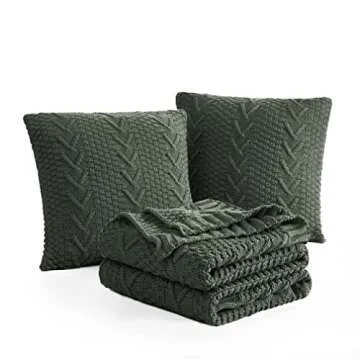 Show more Introducing the **Aormenzy Knitted Throw Blanket Set**—your ultimate solution for comfort and style in your home. This beautifully crafted set includes a cozy throw blanket (50" x 60") and two matching pillow covers (18" x 18") in an elegant grayish-green hue. Made from **100% acrylic**, this set delivers unparalleled softness and warmth while ensuring durability that stands the test of time. Thanks to its **heavy and thick construction**, the blanket provides much-needed coziness during those chilly nights, while the throw pillows add perfect support to your lounging experience. With a classic woven pattern, the Aormenzy throw is not just functional; it’s a stylish addition to any decor, making it a versatile piece for your living room, bedroom, or even your office! Less