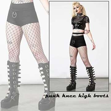 Show moreElevate your style with the AOSPHIRAYLIAN Women's Goth Knee High Boots, a perfect fusion of fashion and functionality. These stunning wedge high heel boots feature a heel height of approximately 3.54 inches and a comfortable platform height of around 1.96 inches, giving you the height you desire without sacrificing comfort. Crafted from durable faux PU leather, the upper material exudes a chic, edgy vibe that is perfect for any wardrobe. The anti-skid rubber sole ensures you're steady on your feet while making a bold statement.