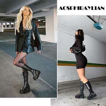 AOSPHIRAYLIAN Womens Platform Boots Wedge High Heel Side Zipper Lace up Gothic Motorcycle Combat Studded Knee High Boots