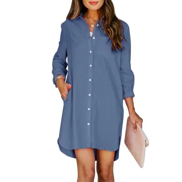Show moreDiscover the ultimate blend of style and comfort with the Aoudery Women's Button Down Shirt Dress. Crafted from high-quality, breathable fabric, this dress guarantees a soft and comfortable fit, making it your go-to choice for daily wear. Designed with a loose silhouette, it’s perfect for various occasions—from casual hangouts to formal gatherings. The dress features a chic button-down design with a classic collar and functional side pockets, adding both utility and flair to your wardrobe. With versatility in mind, it can be easily styled as a beach cover-up or paired with leggings for a sophisticated look. This dress remains true to size and holds its shape beautifully even after washing, ensuring it stays a staple in your closet for years to come.