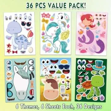 Aowplc 36 Pcs Make-A-Face Sticker Sheets Kids Party Favors Mix and Match Stickers with Dinosaurs, Mermaids, Unicorns, Horses, Farm & Sea Animals for Parties, Birthdays, Classroom Activities & Crafts