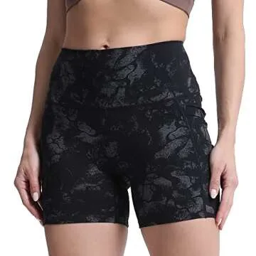 Aoxjox Biker Workout Shorts Women with Pocket Legend Tummy Control High Waisted Exercise Athletic Gym Running Yoga Short 5" (Black Camo Print, Medium)