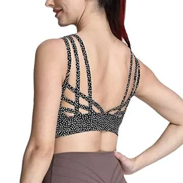 Aoxjox Caged Sports Bras for Women High Impact Fitness Running Multi-Cross Back Training Yoga Crop Tank Workout Tops (Black Dot Print, Small)