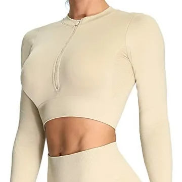 Show moreIntroducing the Aoxjox Long Sleeve Crop Top for Women, your new go-to for stylish workouts and chic everyday wear. Crafted from high-quality, seamless fabric, this top not only enhances your physique but also provides unparalleled comfort without compromising on style. The elegant beige color complements any outfit, making it a versatile addition to your wardrobe. The crop design accentuates your waist, while the long sleeves offer coverage and warmth during cooler workouts or outings. Ideal for gym sessions, yoga classes, or simply lounging at home, the Aoxjox top effortlessly combines function with fashion.