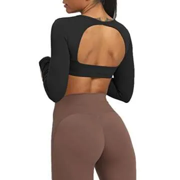 Aoxjox Long Sleeve Crop Tops for Women Clarissa Backless Workout Cropped T Shirt Top (Black, X-Small)