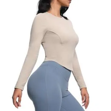 Show moreIntroducing the Aoxjox Long Sleeve T-Shirt for Women GEO Seamlines Padded Baby Tee Workout Crop Top with a built-in bra, designed specifically for today’s active woman. This contemporary and stylish crop top comes in a chic Mink hue and is available in a comfortable Large size, making it an essential piece for your fitness wardrobe. The unique inside shelf bra is meticulously crafted to provide the perfect support while ensuring a snug fit. This means you can focus on your workout without any distractions, allowing for maximum performance. Crafted from high-quality, breathable fabric, this top not only looks great but feels incredible against your skin, making it ideal for workouts, errands, or casual outings.