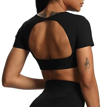 Aoxjox Short Sleeve Crop Tops for Women Clarissa Hollow Back Workout Cropped T Shirt Top (Black, Small)