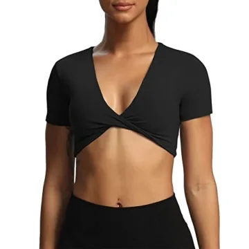 Aoxjox Women's Sienna Twist Deep V Workout Crop Top - Perfect Fit & Style