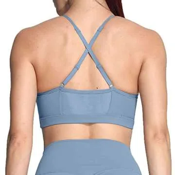 Aoxjox Sports Bras for Women Workout Fitness Ruched Training Baddie Cross Back Yoga Crop Tank Top (Steel Blue, Small)