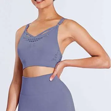Aoxjox Strappy Sports Bra for Women Energy Longline Wirefree Gym Yoga Seamless Workout Top (Malibu Blue, Medium)