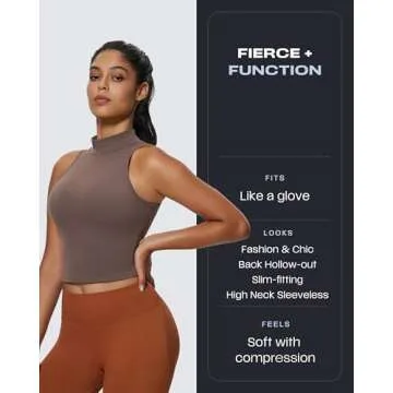 Aoxjox Women's High Neck Sleeveless Vests Kim Cutout Tank Tops Gym Workout T Shirt Top (Fudge Coffee, Medium)