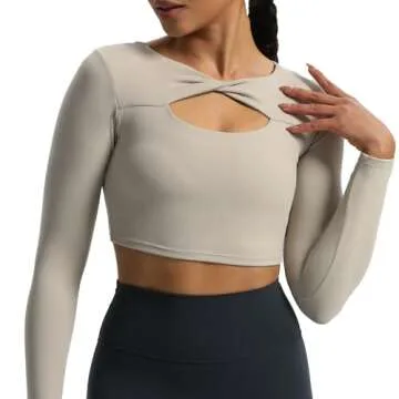 Aoxjox Women's Long Sleeve Crop Tops with Padded Tara Twist Workout Crop T Shirt