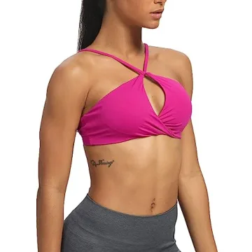 Show more Discover the perfect combination of style and functionality with the Aoxjox Women's Workout Sports Bras Fitness Adjusted Backless Padded Ariel Halter Bra Yoga Crop Tank Top. This stunning magenta purple bra isn't just visually appealing but is designed for ultimate comfort and support during your workouts. Its unique twist detail adds a chic touch that elevates your fitness attire while remaining practical for mid to low-intensity workouts. Crafted with soft, buttery fabric, this bra hugs your body in all the right places for a flattering fit without compromising on support.