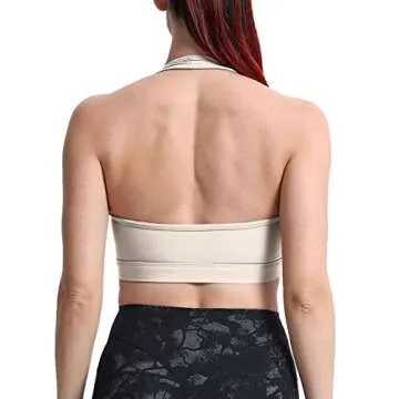 Aoxjox Women's Workout Sports Bras Fitness Backless Padded Halter Bra Yoga Crop Tank Top (Mink, Medium)