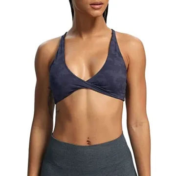 Show more Introducing the Aoxjox Women's Workout Sports Bras - your new favorite companion for all things fitness! This stylish and functional Sienna Twist Low Impact Bra is perfect for light workouts, training sessions, or lounging at home. Constructed with a beautiful Cloud Navy color, this sports bra features a unique backless design with thin crossed straps, offering a twist of elegance while ensuring you look effortlessly chic. The material is buttery soft and provides moderate compression that contours and smooths your body without any restrictions. Say goodbye to uncomfortable bras and hello to comfort and style!