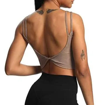 Aoxjox Women's Workout Sports Bras Fitness Padded Backless Yoga Crop Tank Top Twist Back Cami (Cloud Fade Mocha, Medium)