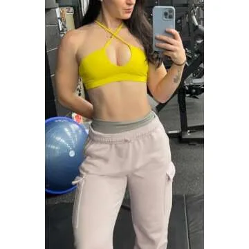 Aoxjox Women's Workout Sports Bras Jamie Deep V Fitness Backless Padded Training Gym Bra Yoga Crop Tank Top (Vibrant Yellow, Medium)