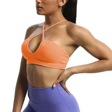 Aoxjox Women's Workout Sports Bras Jamie Deep V Fitness Backless Padded Training Gym Bra Yoga Crop Tank Top (Papaya Orange, Medium)