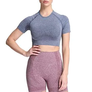 Aoxjox Women's Vital Short Sleeve Seamless Crop Top - Dark Blue Marl