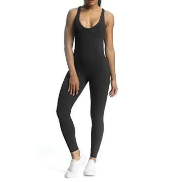 Aoxjox Workout Jumpsuit for Women - Stylish Cross Back One Piece Gym Sportswear