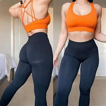 Aoxjox Workout Seamless Leggings for Women Smile Contour High Waisted Gym Yoga Pants Tights (Black Marl, Small)