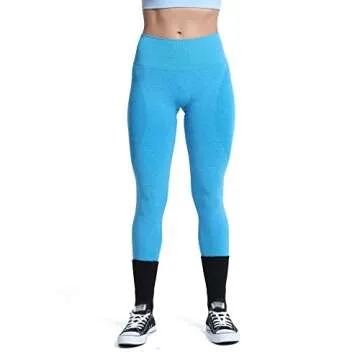 Aoxjox Workout Seamless Leggings for Women Smile Contour High Waisted Gym Yoga Pants Tights 26” (Ocean Blue Marl, Small)