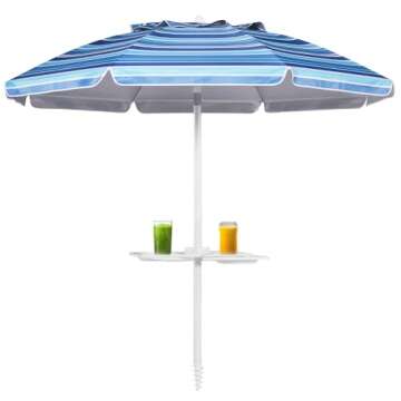 Aoxun 7ft Beach Umbrella with Tray and Tilt Pole Portable Patio Umbrella with Sand Anchor and Carry Bag Outdoor UPF 50+ Sun Shelter with Air Vents Design (Navy Blue)
