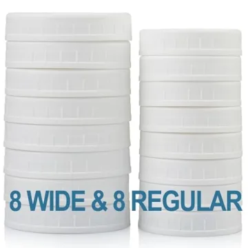 AOZITA 16-Pack Plastic Mason Jar Lids - 8 Regular and 8 Wide Mouth - Dishwasher Safe