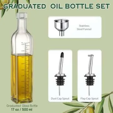 AOZITA 17oz Glass Olive Oil Dispenser Bottle - 500ml Clear -Oil & Vinegar Cruet with Pourers and Funnel - Olive Oil Carafe Decanter for Kitchen