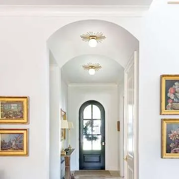 Aozu Glass Globe Ceiling Light Mid Century Gold Flush Mount Ceiling Light Fixtures with White Glass Shade, Modern Ceiling Pendant Light for Bedroom Living Room Kitchen Entrance Hallway (35cm/ 13.8")