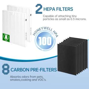 AP-1512HH Airmega 200M True HEPA Replacement Filters Compatible with Coway AP-1512HH, AP-1518R, AP-1519P, Airmega 200M filters, Part# 3304899, 2 HEPA Filters + 8 Carbon Pre-Filters