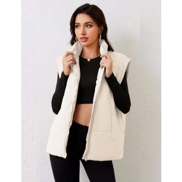 APAFES Women Winter Oversized Puffer Vest Lightweight Stand Collar Flysleeve Insulated Padded Puffy Jackets Coat with Pockets