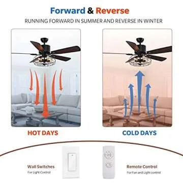 APBEAMLighting Industrial Caged Ceiling Fan Light with Remote Control 52 Inch Vintage Ceiling Fan Light Farmhouse Black Retro Indoor Fandelier with 5 Reversible Wood Blades for Living Room Bedroom