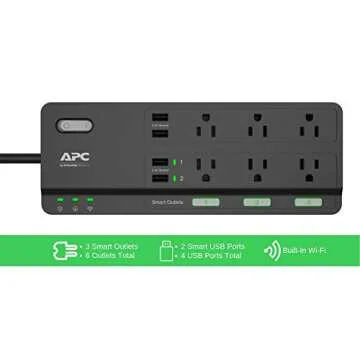 APC Smart Plug Wi-Fi Power Strip with USB Ports, PH6U4X32, 3 Smart Plugs that Work with Alexa, 6 Outlets Total, 2160 Joule Surge Protector Black