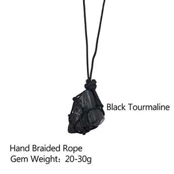 Apengshi Healing Crystal Quartz Raw Net Pocket Pendant Black Tourmaline Natural Crystal Gemstone Braided Necklace Jet Stone Irregular Healing Stone Reiki Hangings Craft with Weave Rope