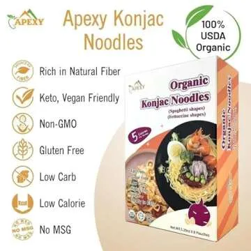 Apexy Organic Shirataki Konjac Noodle with Organic Oat Flour 42.24oz 8 Pouches Inside Healthy Diet, Low Calorie, Low-Carb Gluten Free, Vegan, Keto and Paleo-Friendly. (Spaghetti and Fettuccine Shape Combo)